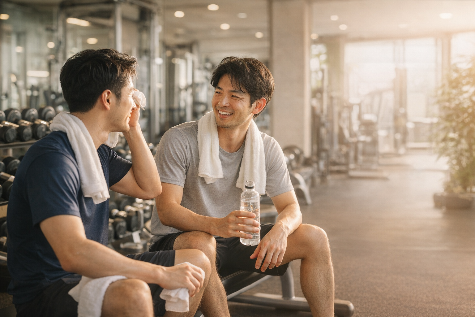 不自然さを一切排除し、あくまで“ジム仲間”としての距離感を維持。